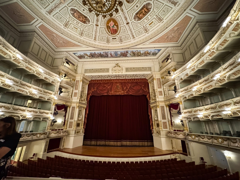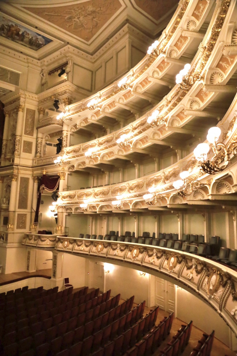 Weiter ging’s zur Semperoper. Bei der Führung erfuhren wir, dass vieles „Theater im Theater“ ist. Säulen die zwar aussehen wie Marmor, sind aber eigentlich nur aus Gips – also quasi Fake-Marmor. Trotzdem ziemlich beeindruckend! Wir durften sogar im Zuschauerraum in der Königsloge Probesitzen und fühlten uns fast wie echte Opernbesucher (nur leider ohne Gesangseinlage).