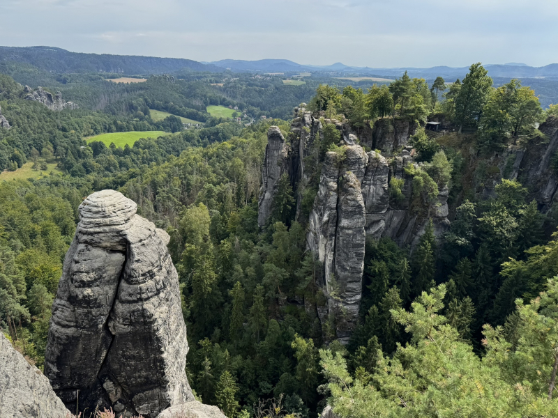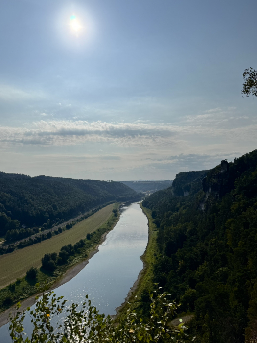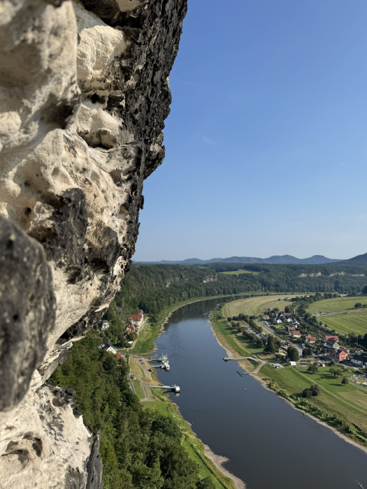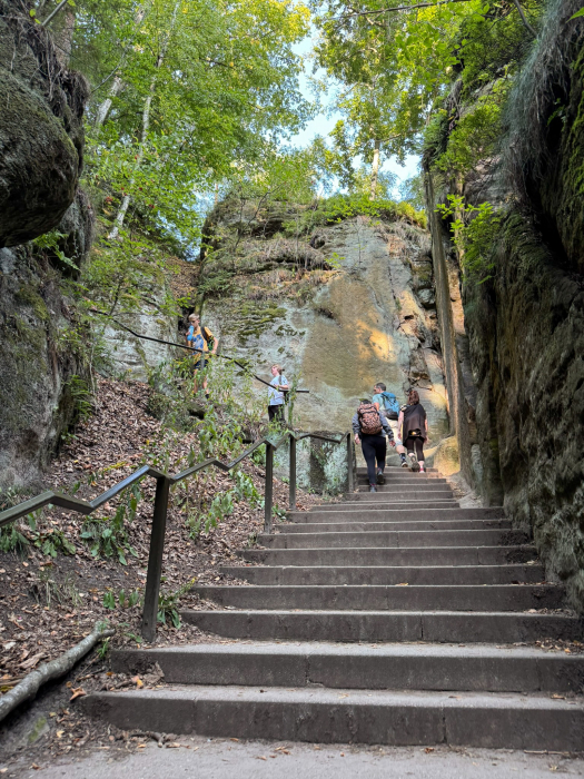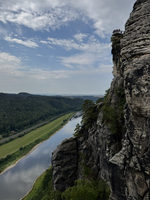 Am zweiten Tag hieß es: Wanderschuhe an und ab in die Sächsische Schweiz! Unsere Route führte uns rund um die berühmte Bastei. Die Aussicht von der Bastei war so cool, dass sogar die Selfies noch besser aussahen als sonst. Im romantischen Amselgrund entdeckten wir den Amselsee – ein kleiner Stausee, den man nur zu Fuß erreicht. Dort gab’s eine wohlverdiente Pause und wir machten eine entspannte Tretbootfahrt. Endlich mal sitzen und die Füße hochlegen! Die Natur war echt beeindruckend und wir fühlten uns wie Abenteurer im Dschungel (nur mit weniger wilden Tieren und drei Enten).