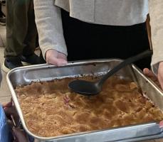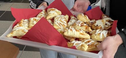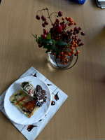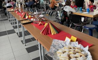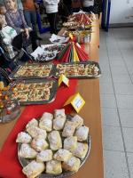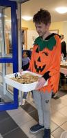Jede Klasse hat ein leckeres herbstliches Gericht zubereitet: Apfelkuchen, Kürbissuppe, Apfelcrumble, gefüllte Apfelplätzchen, Pflaumentaschen, Flammkuchen, überbackener Kürbis, heißer und kalter Apfeltee - all das brachte je ein Schüler auf das Bufett. Und damit alle wissen, was es zu Essen und Naschen gab, hatte jede Klasse noch einen kleinen Vers dazu gedichtet und aufgesagt.