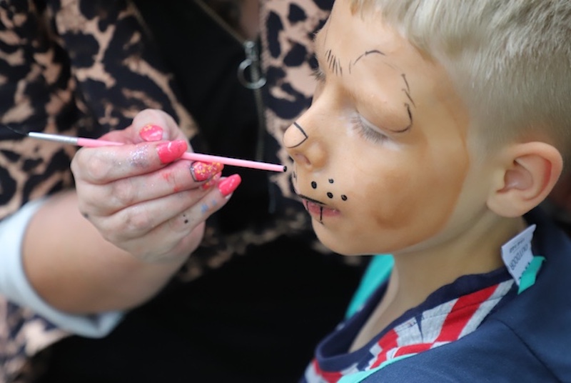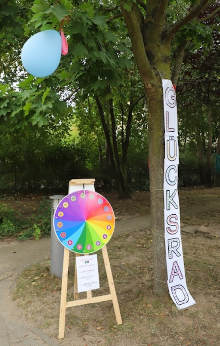 Wer sich etwas sportlich auspowern wollte, konnte dies auf der Hüpfburg, beim Badelatschenweitwurf, beim Dosenwerfen oder beim Wasserbombenzielwurf tun. Ein glückliches Händchen brauchte man beim Glücksrad und ein ruhiges Händchen stellten unsere Kolleginnen beim Schminkstand unter Beweis.