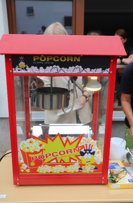 Nach diesen beiden Programmpunkten begann der Trubel auf dem Schulhof, im Foyer und im Innenhof. Die Bar empfing ihre ersten dustigen Gäste, der Kuchen duftete lecker, die Hotdogwürstchen und das Popcorn schmeckten bestens und auf dem Schulhof gab es jede Menge zu erleben.