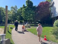 Drei Klassen haben sich zum gemeinsamen Minigolf am Böllberger Weg verabredet.