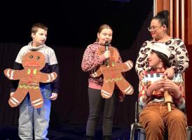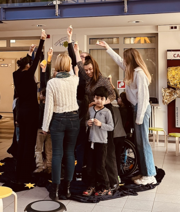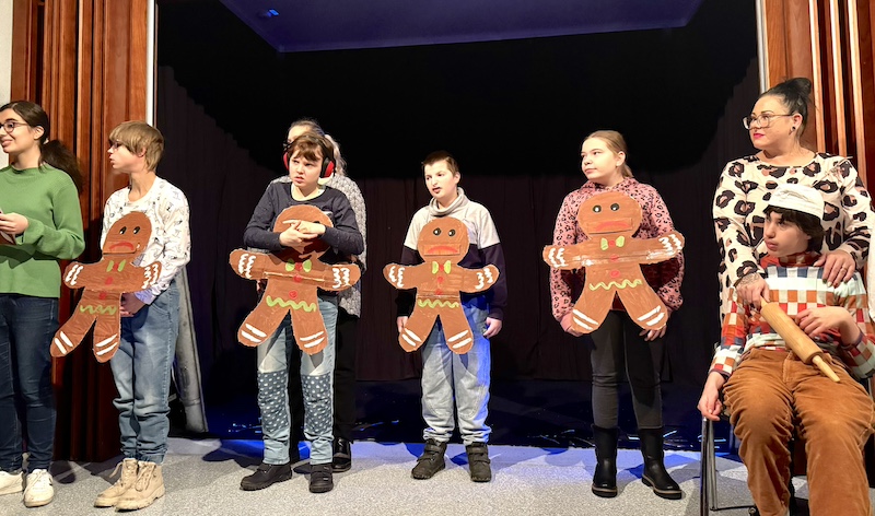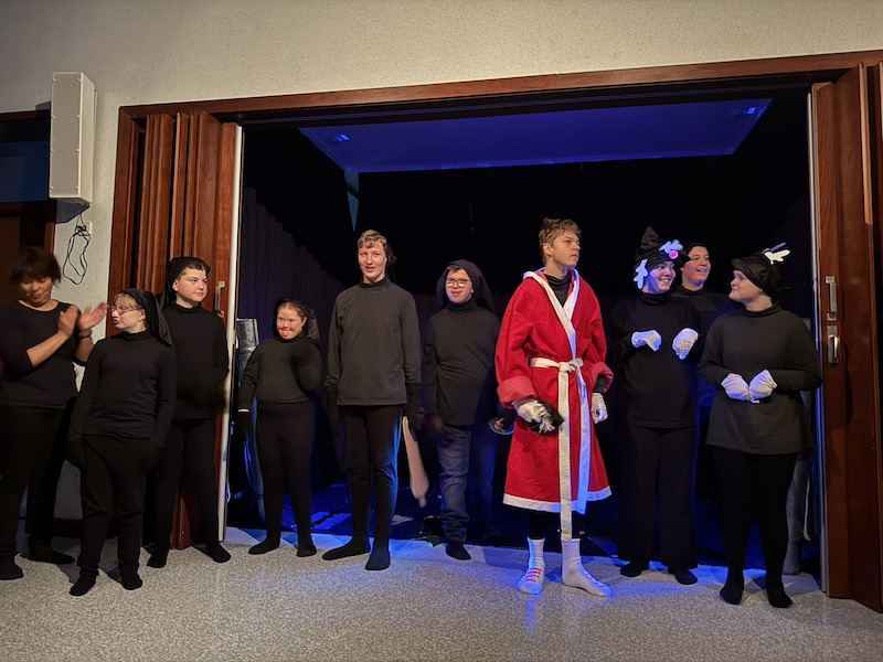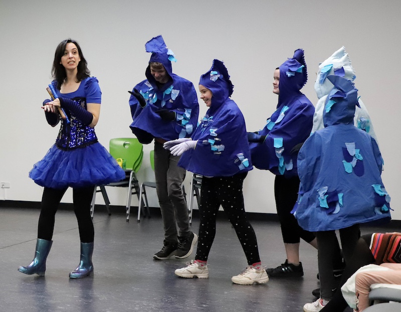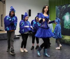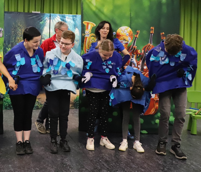 Als Highlight durften einige Schüler in der Geschichte mitspielen, als Blumen und Fische.