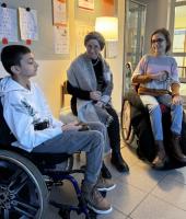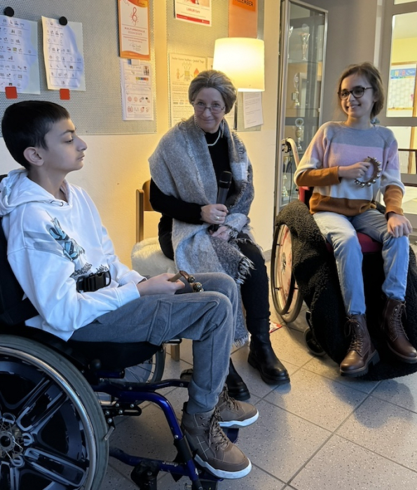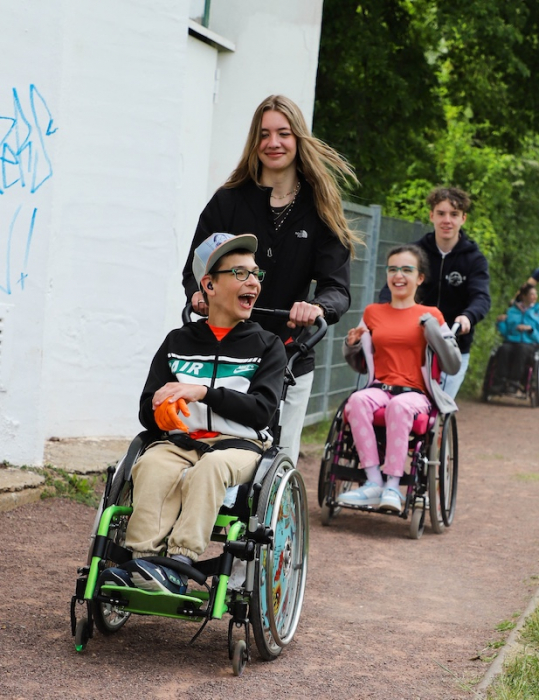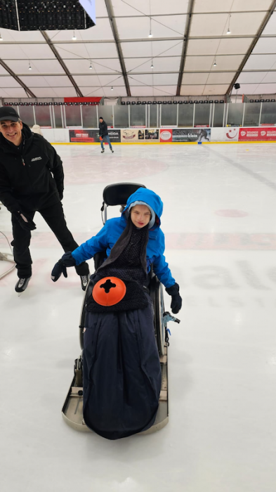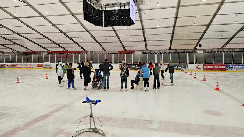 Sogar unser Rollstuhlfahrer hatte Spaß und schlitterte mit Hilfe der Schulbegleiterin über die Eisfläche.
