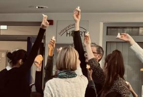 Nach der feierlichen Zeremonie wurde beim Sektempfang gemeinsam angestoßen, gelacht und miteinander ins Gespräch gekommen. Natürlich durften auch die Abschlussfotos nicht fehlen – als bleibende Erinnerung an einen besonderen Tag.