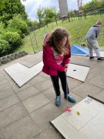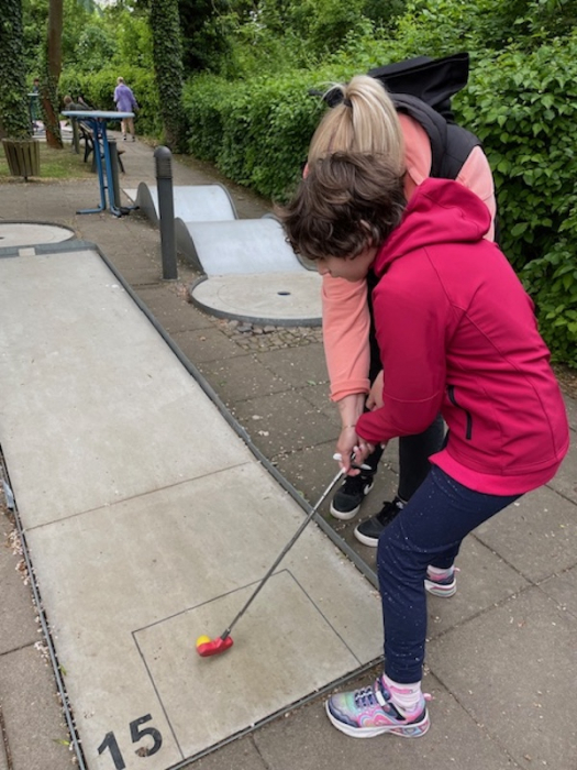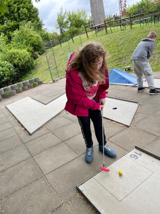 Für die meisten Schüler und Schülerinnen war es das erste Mal, dass sie einen Minigolfschläger in der Hand hielten. Das tat der Freude und Motivation aber keinen Abbruch- im Gegenteil. Es wurde viel gelacht und ganz nebenbei der Golfball eingelocht.