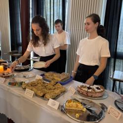 Für kühle Getränke und das leibliche Wohl sorgten unsere Mitarbeiter und ältesten Schüler an der Getränkebar und an der Kuchentafel mit Kaffe im Foyer. Wer noch nicht genug von der Hitze hatte, der konnte sich im Innenhof ein Grillwürstchen schmecken lassen.
