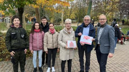 Eine großzügige Spende der Saalesparkasse: 1600€ für ein neues Vorhaben in unserer Schule. Danke!