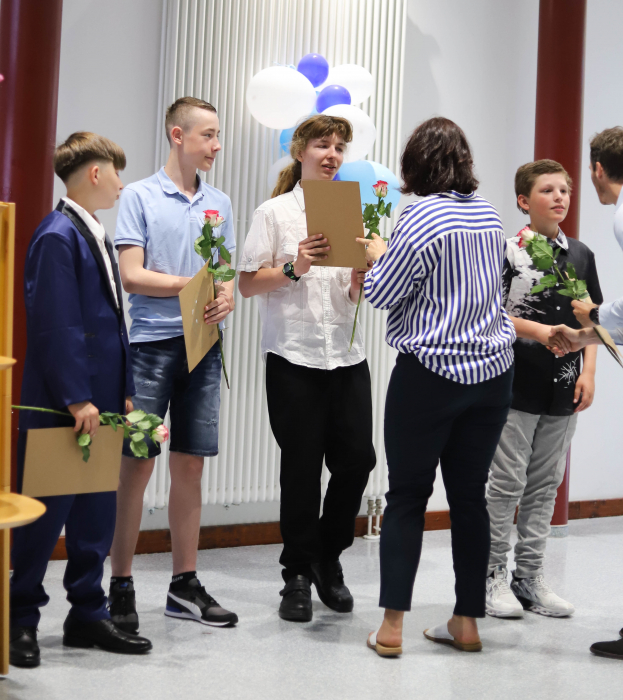 Ein emotionaler Höhepunkt war das Video mit Bildern aus der Einschulung und aktuellen Aufnahmen, das eindrucksvoll zeigte, wie sehr unsere Jugendlichen in den vergangenen Jahren gewachsen sind – nicht nur äußerlich, sondern auch persönlich. Es war ein Rückblick, der viele bewegte und den Weg in die Zukunft spürbar machte.