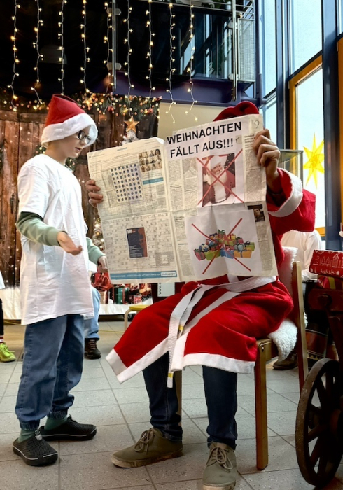 Nun wird es weihnachtlich: das traditionelle Adventssingen in unserer Schule läutet die Weihnachtszeit ein. Die Grundstufe stimmte alle auf die Adventszeit ein und die Mittelstufe rettet das Weihnachtsfest!!