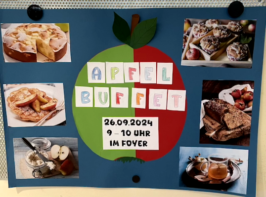 Der Herbst ist da! Im Herbst ist Erntezeit und wir haben geerntet: Äpfel! Und dazu gab es kurz vor den Herbstferien noch eine besondere Leckerei für alle- unser Apfelbuffet.