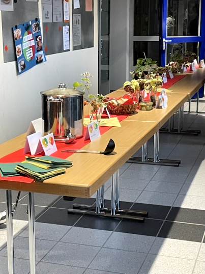 Die Schüler und Schülerinnen der Berufsschulstufe haben sich um das Obstbuffet gekümmert, einige Kollegen brutzelten die Bratwürste am Grillstand und die Helfer und Helferinnen aus dem Elisabeth-Gymnasium haben uns auch in diesem Jahr wieder zuverlässig unterstützt.