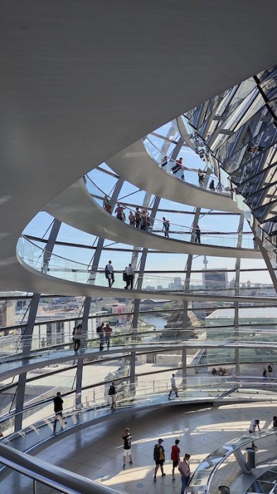 Bei strahlendem Sonnenschein und sommerlichen Temperaturen konnten die Schülerinnen und Schüler viele der bekanntesten Sehenswürdigkeiten der Stadt entdecken. Ein besonderes Highlight war der Besuch des Reichstagsgebäudes. Dort erhielten wir spannende Einblicke in die Arbeit des Deutschen Bundestags und konnten von der gläsernen Kuppel aus einen beeindruckenden Blick über die Stadt genießen.