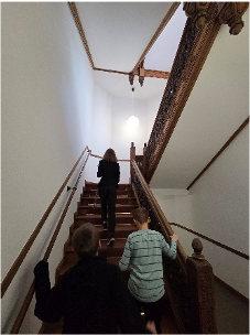 Wir erfuhren auch, dass das Gebäude schon sehr alt ist und nach dem Zweiten Weltkrieg wieder aufgebaut wurde. Außerdem wurde uns erzählt, dass es in der DDR-Zeit als Schule genutzt wurde. Besonders spannend war für uns der Gang über die „alte Treppe“, die bei jedem ersten Betreten ein kleines Ritual ist. Es war beeindruckend, so viel Geschichte in einem Ort zu erleben und zu spüren.