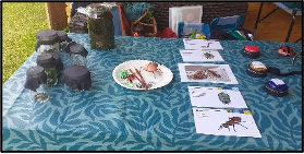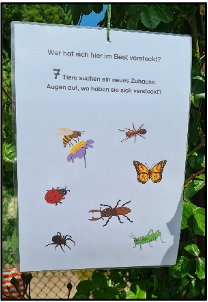 Bei der Station „Gartenhelfer“ entdeckten die Schüler Käfer und Tiere wie Feuerwanzen, Regenwürmer und Ameisen in Original, auf Bildern und als Figuren. Sie erfuhren spielerisch, wie Regenwürmer bis zu 20 Blätter pro Nacht in ihre Gänge ziehen, indem sie eine Strecke mit einem Strohhalm und einem Blatt nachliefen. Mit einer „Facettenbrille“ konnten sie sehen, wie Käfer und Insekten die Welt wahrnehmen, was ihnen viel Freude bereitete.