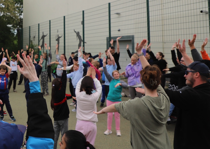 Als Einstimmung zeigten die Mittelstufenklassen ein musikalisches Rhythmus- und Bewegungsprogramm mit Boomwhackers und fetziger Musik. Ausgelassen tanzten und klatschten alle Zuschauer mit und freuten sich anschließend auf die Stände und Spielstationen auf dem Schulhof.