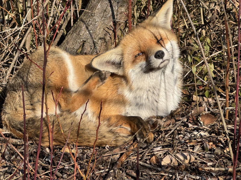 Seit einiger Zeit besucht uns immer mal ein Fuchs. Am 18.02.2025 hat sich Meister Reineke direkt neben dem Schulhof in die Sonne gelegt, um ein Vormittagsschläfchen zu machen.